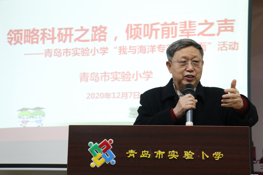 12月7日,海洋所胡敦欣院士、海洋所青促會會長胡石建研究員應邀赴青島市實驗小學開展海洋科普活動,市實驗小學校長梁景萱、副校長胡繁華及百余名師生現場參與活動。
