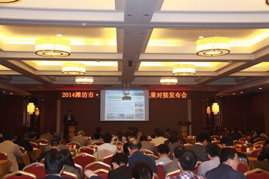 2014年4月11日, 由濰坊市人民政府和中科院沈陽分院主辦,濰坊市科技局、中科院山東綜合技術轉化中心承辦的“濰坊市?中科院科技成果對接發布會”在山東濰坊舉行。中科院沈陽分院副院長馬越紅,沈陽分院院長助理、山東中心主任徐巖,濰坊市委常委、副市長孫起生,山東省科技廳科技合作處處長畢建明,中科院化學所、理化所、電工所、大連化物所、長春應化所、蘭州化物所、煙臺海岸帶所等12個研究所的30余位院士、領導與專家,濰坊市及各縣市區科技、經信等部門及200家企業負責人參加了會議。會議由濰坊市副市長王桂英主持。