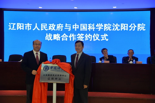 韓恩厚和王正譜共同為“中科院沈陽國家技術轉移中心遼陽中心”揭牌。遼陽中心的建立是中科院沈陽分院貫徹落實國務院東北振興方案的具體舉措。雙方商定,將以共建遼陽中心為全面科技合作的新起點,結合遼陽市的石油化工、裝備制造等特色產業需求,不斷加強中科院先進科技成果的轉移轉化和人員交流,不斷創新多種市院合作方式和模式,為建立健全遼陽市科技創新體系,促進遼陽市經濟社會發展做出新的貢獻。