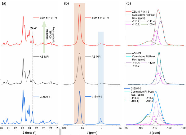 ZSM-5型沸石由于其微孔結構(0.51-0.56 nm)和可調變的固體酸特性,在石油裂解、石化產品精制方面發揮著至關重要的作用。由于沸石微孔限制反應物傳質,近幾十年以來研究重點一直是提高反應物對沸石酸性位的可接觸性以提高其催化活性。通常采用堿液后處理選擇性脫硅刻蝕出晶內介孔來提高沸石酸性位的可接觸性。但是由于沸石母相中四配位鋁對脫硅起抑制作用,這種方法只適用于合成硅鋁比較高的ZSM-5型沸石,合成具有良好可接觸性的低硅鋁比ZSM-5型沸石仍是一個具有挑戰性的課題。