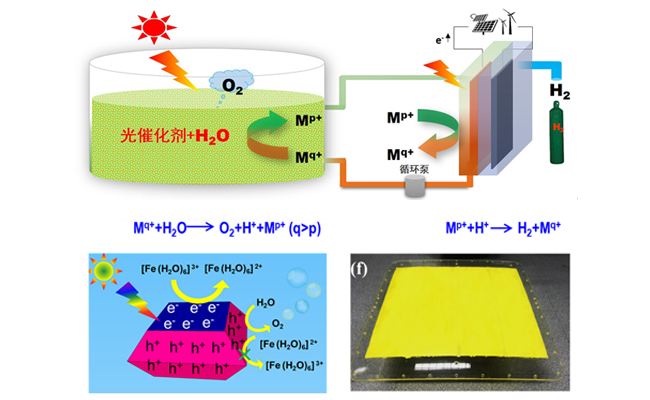最近,研究團隊基于晶面間光生電荷分離原理,通過精確調控釩酸鉍光催化劑氧化和還原反應晶面的暴露比例,優化光催化水氧化反應性能,在Fe3+/Fe2+離子對作為儲能介質的條件下,可見光下光催化水氧化量子效率達到60%以上,“氫農場”體系的太陽能到氫能轉化效率超過1.8%,是目前國際上報道的基于粉末納米顆粒光催化分解水體系太陽能制氫效率的最高值。同時,利用催化劑不同暴露晶面之間的電荷分離特性,使Fe3+/Fe2+離子對之間的逆反應得到抑制。并利用釩酸鉍光催化劑進行了戶外太陽光照射條件下的試驗,驗證了“氫農場”策略的可行性。該工作展示了利用基礎研究成果為應用示范提供科學基礎的一個示例。
