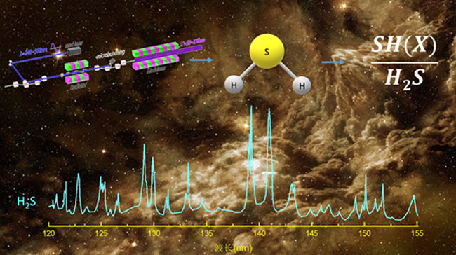 硫是宇宙中較為豐富的元素之一,而硫化氫又被認為是硫化物撞擊星際塵埃的優先產物。由于氫元素豐度高且在星際冰中的遷移率高,所以硫化氫的豐度SH(X)/H2S便成為了科學家們研究的目標。處于基態的硫化氫自由基和硫化氫分子都能在星際介質中被探測到,但是星際介質中探測得到的硫化氫分子的豐度值(13%)遠遠低于天體化學模型的預測值。最近該團隊利用我所極紫外自由電子激光裝置(大連相干光源)對于這一課題開展了系統的研究。研究人員測量了硫化氫在極紫外波段(122至155納米)的光解產物,結果表明SH(X)產物的量子產率( )有著明顯的波長依賴性。將 、硫化氫分子吸收譜和星際輻射場進行卷積,得到約26%的光解會產生SH(X)產物,上述結果忽略了三體解離通道產生的SH(X)產物,所以得到的結果偏大;若考慮三體解離通道,那么得到13%的光解會產生SH(X)產物則成為可能。這些結論表明有必要修正相關的天體化學模型。