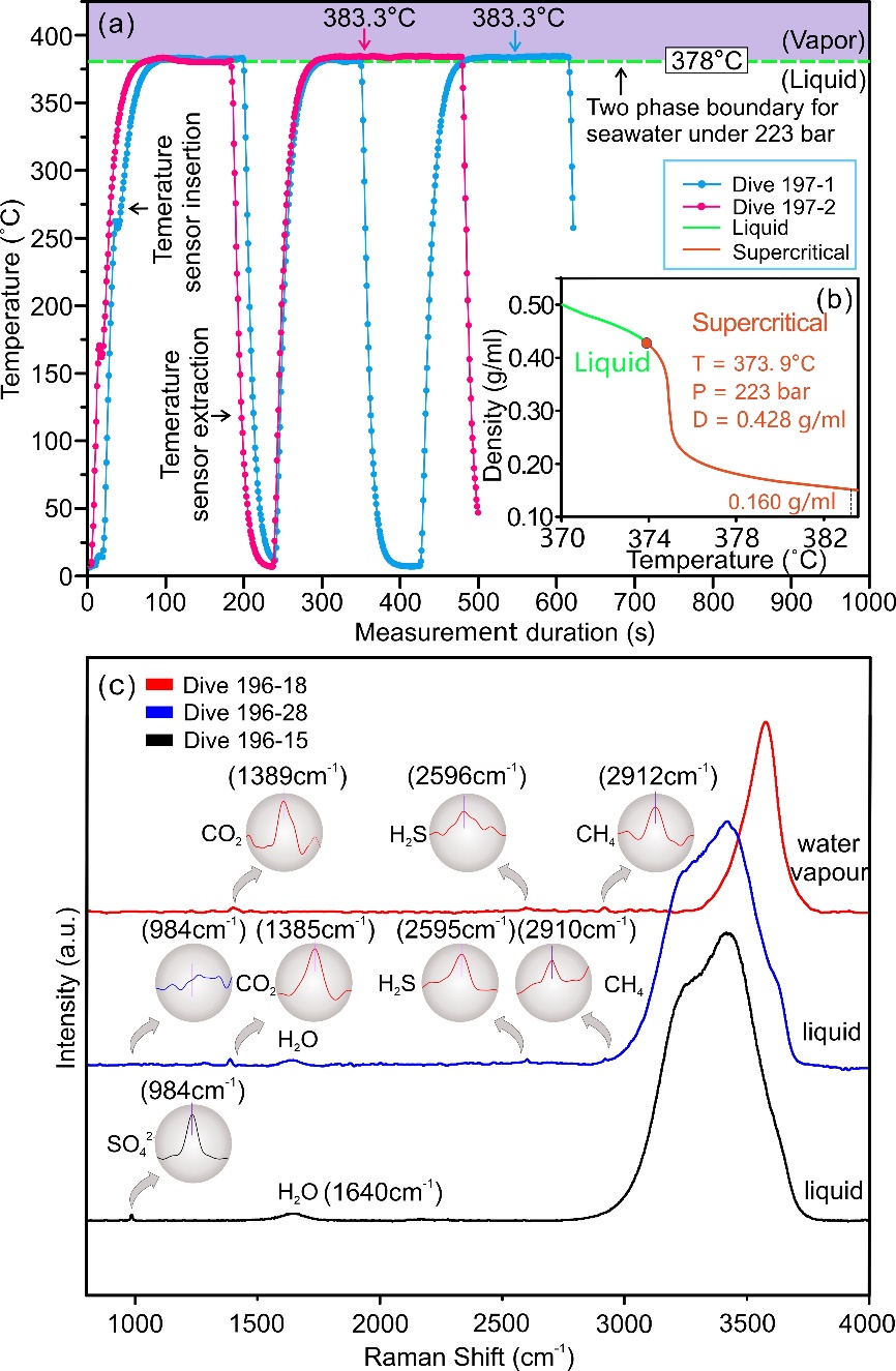 中國科學院海洋研究所閻軍課題組在2018年“科學”號科考船深海熱液航次中,利用我國自主研發的深海激光拉曼光譜原位探測系統(RiP)和深海熱液溫度探針在冰冷的海底之上首次觀測到氣態水存在的證據。該成果5月28日在地球科學權威期刊 Geophysical Research Letters(《地球物理學研究快報》)正式發表。