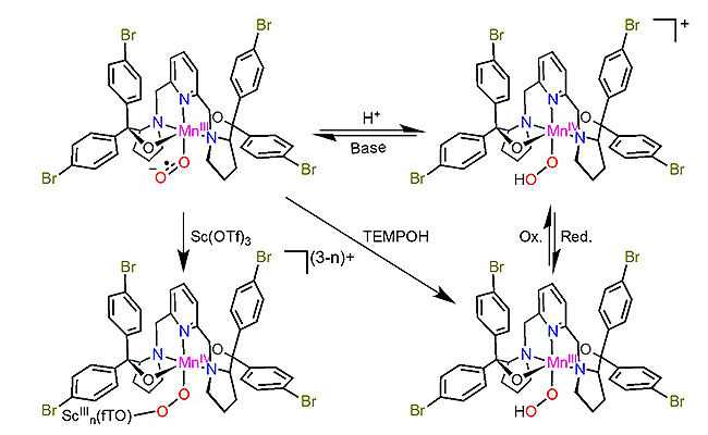 利用質子或金屬耦合的電子轉移實現超氧配合物到過氧配合物的轉化