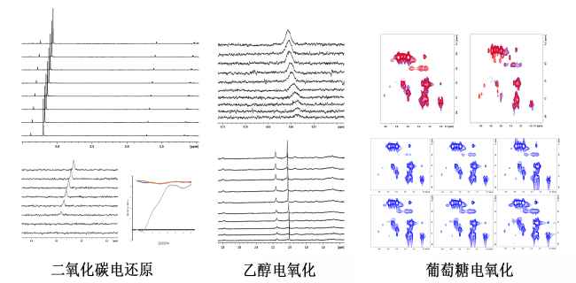 電化學-核磁共振(EC-NMR)是一類結合電化學和核磁共振方法、可實現亞赫茲譜分辨率或微米范疇空間分辨率(磁共振成像)的原位光譜電化學檢測技術。其中,電化學-液體核磁共振通過恒電位儀監測調控電化學反應中電勢電流的變化,同時通過液體核磁共振提供電化學反應中間體和產物、反應動力學等信息,實現電化學和核磁共振數據的平行采樣。電化學-液體核磁共振原位檢測可廣泛用于評價電催化劑、輔助了解電催化反應機理和實時監測反應動力學等,在燃料電池、二氧化碳電催化轉化和平臺化合物制高值化學品等方面有廣闊的應用前景。