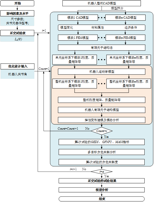 近日,中國科學院沈陽自動化研究所協作機器人研究團隊提出了一種基于有限元子結構法和正交設計的協作機器人全域多目標優化設計方法,該方法以機器人彈性變形、固有頻率以及質量等多種性能指標為優化目標,解決了協作機器人結構優化中存在的位姿及非結構參數影響、多目標耦合、計算速度與精度平衡等問題,具有建模精度高、計算速度快、對各模塊的復雜形狀適應性好等特點,能夠有效提高協作機器人的剛度及動態性能,相關成果發表于優化設計領域國際著名期刊Structural and Multidisciplinary Optimization。