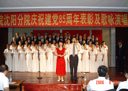 在中國共產黨建黨85周年和紅軍長征勝利70周年前夕,沈陽分院黨組隆重召開了慶祝建黨85周年表彰“兩先兩優”暨歌詠演唱會。沈陽分院駐沈各研究所、轉制公司黨政領導、共產黨員代表、新入黨的預備黨員和離退休職工等共300余人參加了大會和歌詠演唱活動。