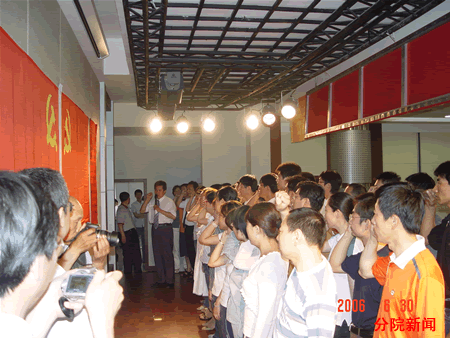 沈陽分院系統各單位七一前夕發展的40多名新黨員面對鮮紅的黨旗舉行了入黨宣誓儀式。