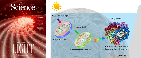 圖1 Science封面報道以及赫胥黎艾氏藻的PS I-FCPI超復合體模型