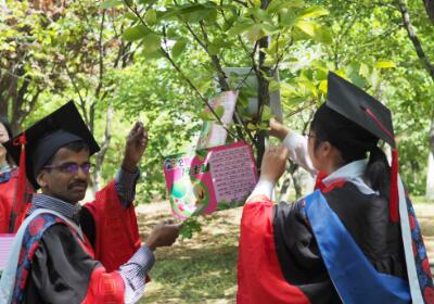 5月23日下午,大連化物所即將畢業的博士生們揮鍬培土,澆水灌溉,在博士林里種下寄托美好愿望的玉蘭,為自己的青春留下美麗的印記。大家身著學位服,在美麗的博士林里合影留念,伴隨陣陣快門聲,學子們燦爛的笑容定格在這美好的一刻。